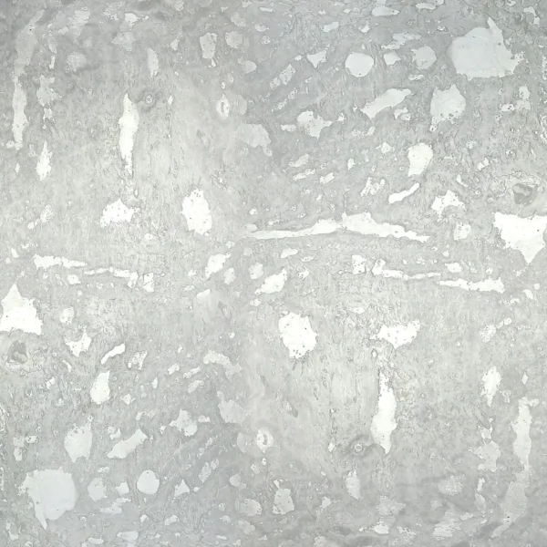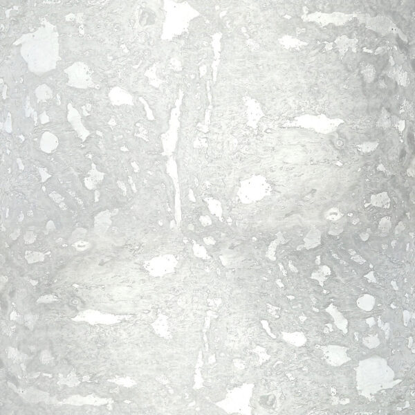 Silver captures the ethereal beauty of patinated sterling. The surface showcases a sophisticated interplay of lighter fragments against a softly luminous silver background, creating a dynamic surface. The organic pattern of subtle highlights produces a naturally varied yet controlled appearance.